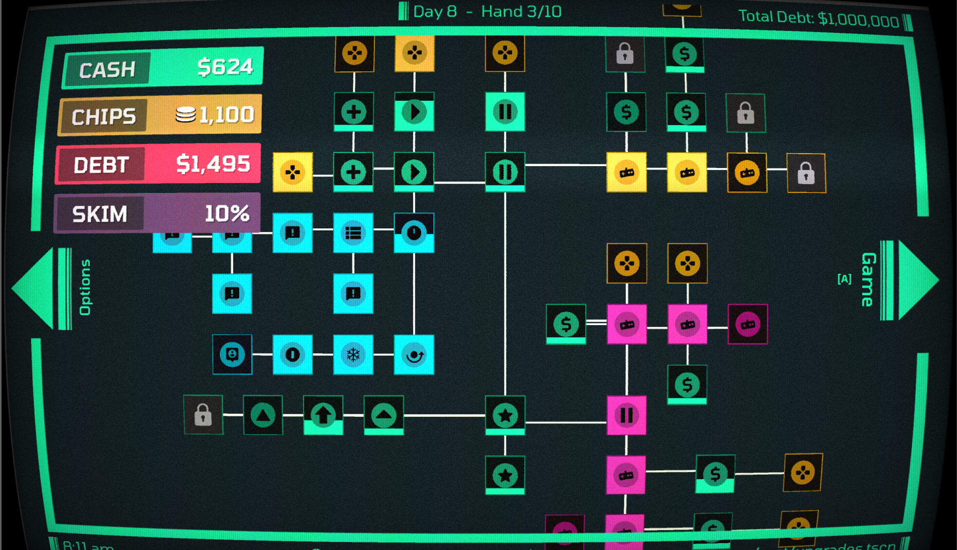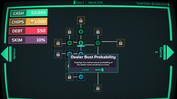 You HAVE to have done something with the luck. I actually started keeping track of the runs after how fucking awful the luck has been. Out of 30 draws, I had NINETEEN unwinnable hands (kept drawing until bust to make sure that at no point could've I stood and won). The dealer was consistently getting 20s and I was consistently getting 14-16s. If this isn't intentional, I really feel like you should add something safeguard against this. I got behind on the debt, and lost most of the skim, and the game basically became unplayable unless I really wanted to do an extremely slow and tedious grind.